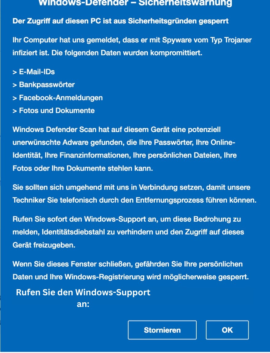 Der Zugriff auf PC wurde gesperrt. Greifen Sie nicht auf diesen PC zu und starten Sie ihn nicht neu. Sai. Wenn Sie die Warnung übersehen, sind die Info zu diesem Problem nicht ausreichend kann verloren gehen. Microsoft Unsere Experten begleiten Sie telefonisch durch die Untersuchung. Wenn Sie diese Anwendung ausführen, wird Ihr PC möglicherweise gefährdet.